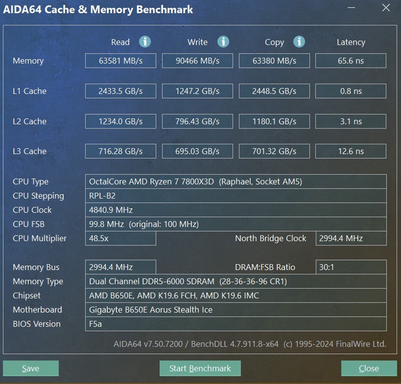 我们首先针对内存测试,检验技嘉D5黑科技的实力,先来看一下开启EXPO 6000后的内存表现。