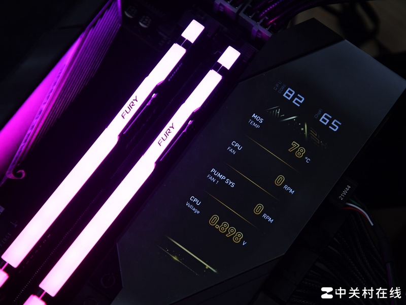 这款主板的EZ Bridge正面上方是一块3.99 �LCD屏幕,既能实时显示硬件参数信息,支持硬体监控、故障排除、BIOS 更新等功能,还能进行个性化调节,自由调节显示界面。