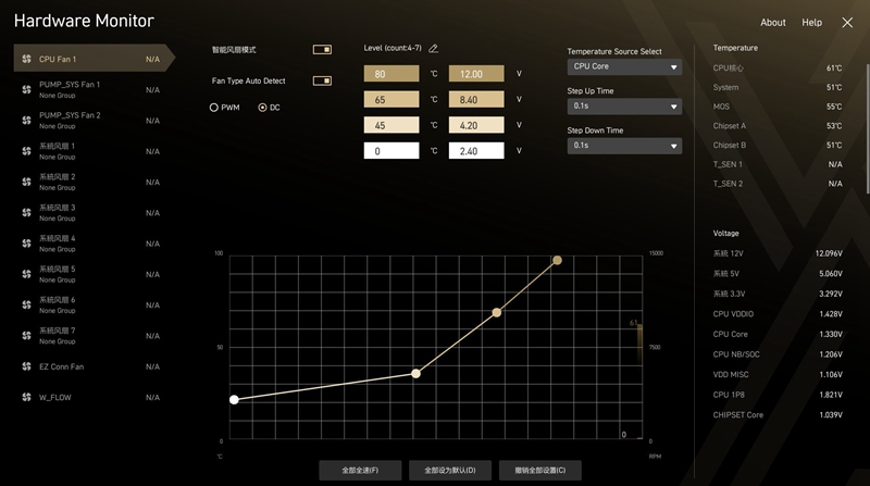 EZ-MODE顶部也保留一些快捷设置,Hardware Monitor也可以直接快速打开,监控和调节整机风扇运行情况。