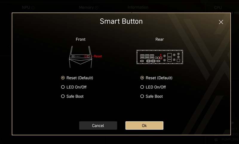 旁边还有I/O时提到的的Smart Button,可以在这里对这个按钮进行设置,比如调整机箱重启开关,避免误差,开关整机LED和 Safe Boot安全加密这些设置。