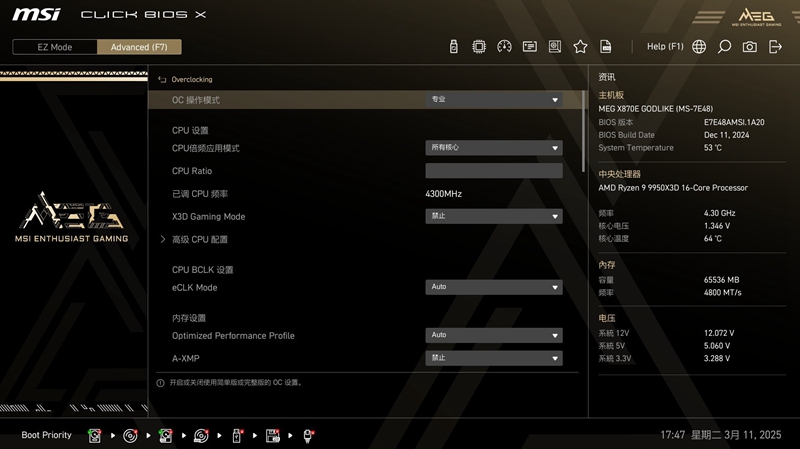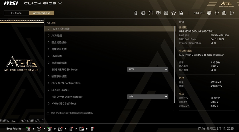 2 微星 X870E GODLIKE超神主板BIOS