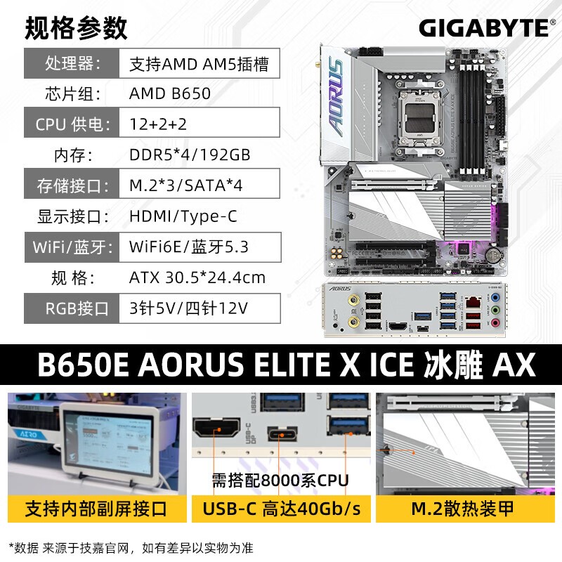 技嘉 B650M 主板 搭 威刚 DDR5 6400/6800 16G/32/48G 联名内存条套装 海力士A-DIE颗粒 B650E A ELITE X ICE冰雕WiFi DDR5单主板