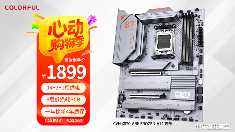七彩虹CVN X870 ARK FROZEN V14 方舟 DDR5主板 支持CPU 9900X/9950X/9800X3D