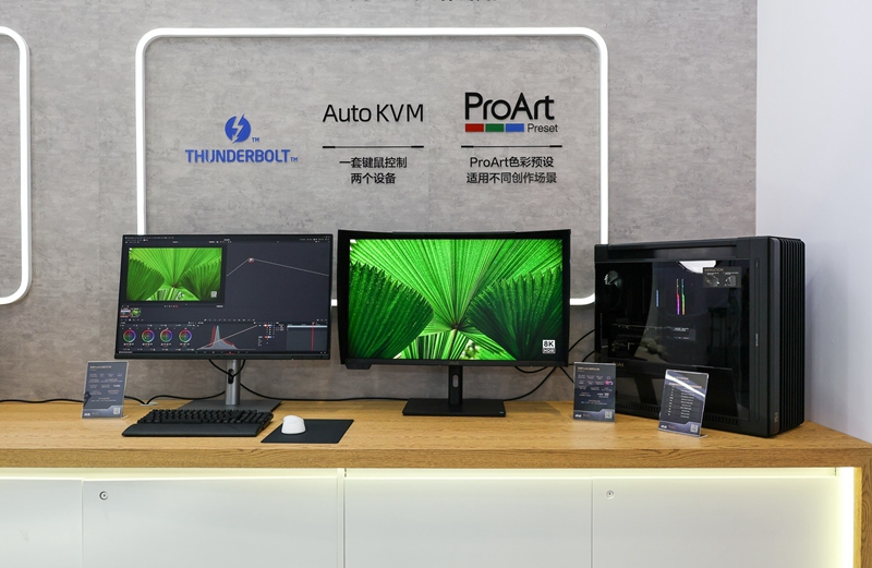 产品家族体验中心,集合ProArt全系列产品,每位创作者可以在这里进行产品体验,或与工程师现场交流,找到适合自己的一站式工作流解决方案。此处1套ProArt全家桶主机以华硕ProArtB760-CREATOR WIFI主板为核心,加上Intel酷睿i7-14700K处理器、华硕PRIME RTX5060Ti O16G显卡等硬件,为游戏开发者、艺术家、建筑师提供坚实的创作基础,随时随地释放创造力!
