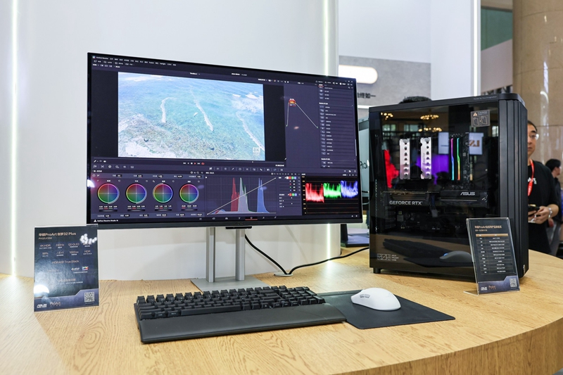 在华硕ProArt创艺国度的展台,一间色彩科学实验室吸引了众多观众的驻足。华硕ProArt系列产品以软硬一体化的专业级色彩管理方案,彻底终结“凭感觉修图”的时代。此处的ProArt全家桶搭载华硕ProArt Z890-CREATOR主板、Intel酷睿Ultra 9 285K处理器、华硕PRIME RTX 5080 O16G显卡等硬件,轻松应对AI智能修图、视频剪辑等高负载任务。还有华硕ProArt创梦32 Plus专业显示器,通过强大色彩管理能力,让每一帧画面都忠于创作初衷。