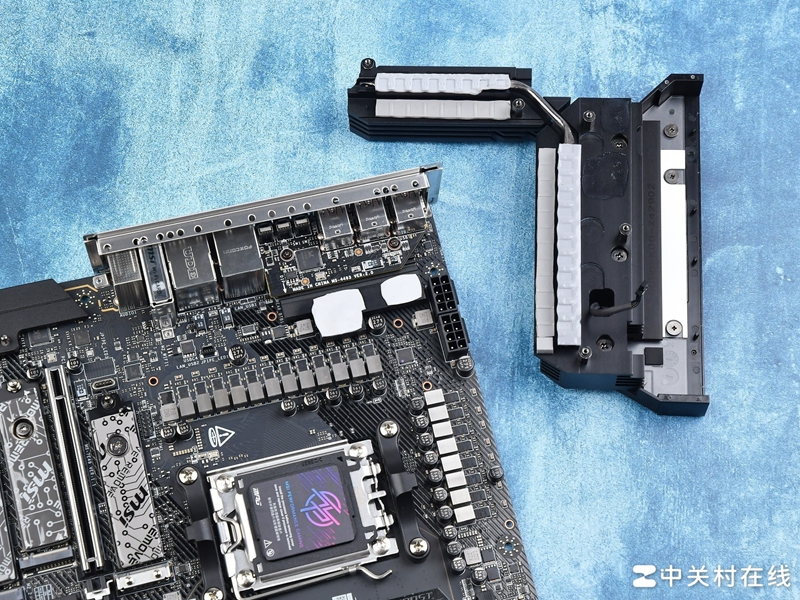 供电能力提升,微星 X870E 暗黑主板的散热鳍片规格也比以往更大更厚实,重要区域也提供了散热垫,保证高压稳定输出。