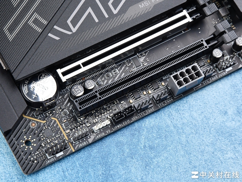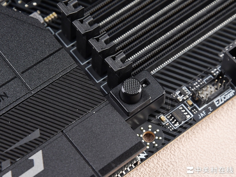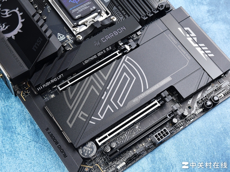 微星这次给最常用的顶部PCIe 5.0x16插槽准备了快拆按钮,按下即可将显卡拔出,对于装机拆机来说都很方便。