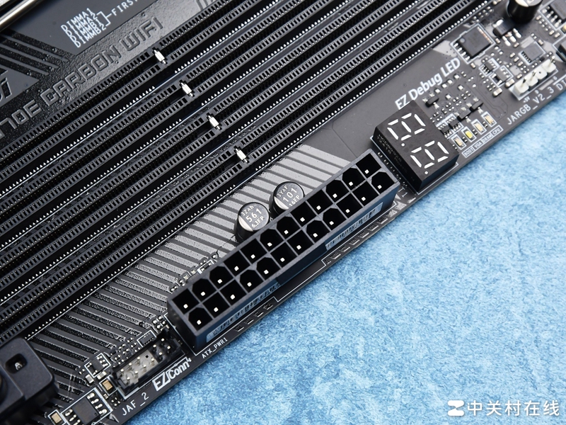 Debug自检灯和数字显示屏位于顶部主板供电接口上方,方便用户快速排查硬件故障问题。