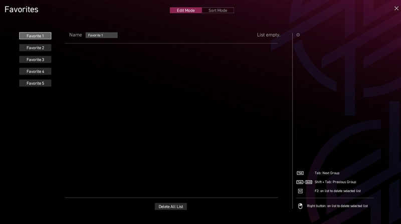 Favorites保留一些常用选项,对于经常超频的用户不用额外进入子项中找常用的一些选项了,很方便。