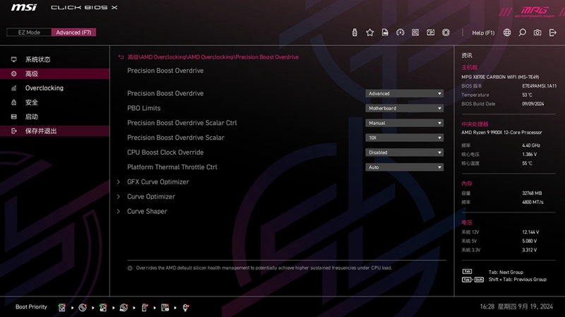 Performance用来调整PBO的模式,选择自动开启或者关闭。