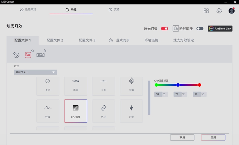 MSI Center主要用来调节整机灯效联动,内置非常多的灯效选项,定制化功能晚上。而除了灯效也能通过这款软件进行一些系统设置、优化和调节,总体来说新手和老玩家都建议安装使用。