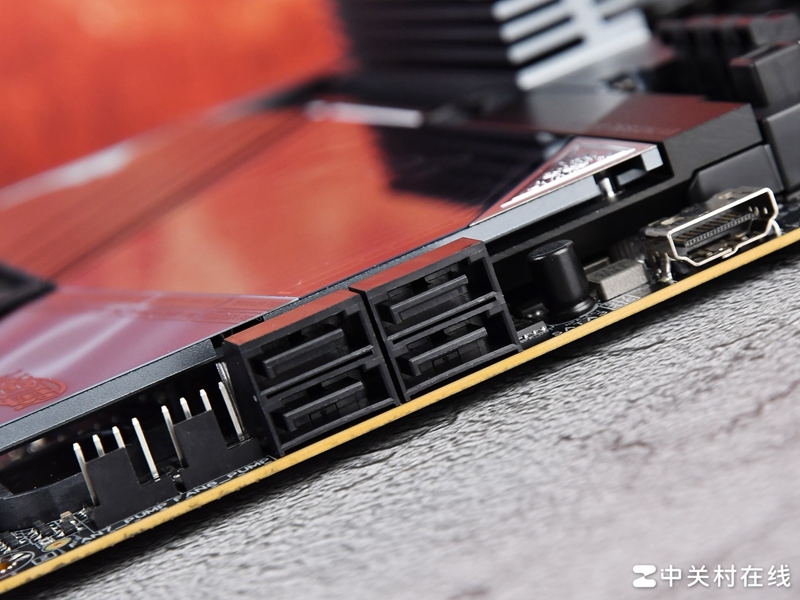 常规拓展上还有4组SATA接口,旁边准备了一个HDMI接口,这位置比较少见,一般位于I/O区域。
