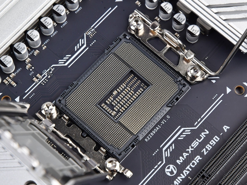 主板的核心位置是LGA1851接口,目前只能兼容酷睿Ultra 200S系列CPU,按照惯例还会支持下一代CPU,不过14代及之前的酷睿就不能兼容了。好消息是这个接口可以兼容LGA1700的散热器。