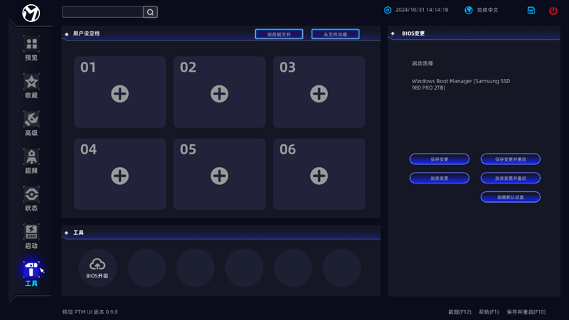 启动页面提供了启动的设置,启动读取硬件的优先级,UEFI优先级,FastBoot等等,工具页面则可以保存常用的BIOS设置,以及BIOS更新,让玩家可以方便地保存不同的系统设置偏好。