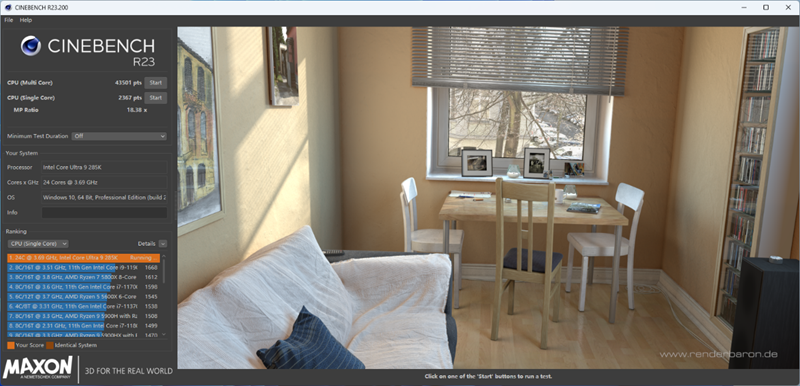 在多线程测试中,Ultra 9 285K同样获得了出色的表现,CPU-Z得分18737分,CineBench R23斩获43501分,各项测试均优于酷睿i9-14900K和锐龙9 9950X,可见铭瑄 Z890-A WiFi对CPU性能的释放还是非常到位的。