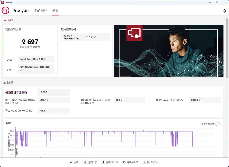 在生产力表现方面,我们先使用ULProcyon进行基准测试,其照片编辑基准测试分数为9011,视频编辑分数为9697,可以轻松应对图像和视频方面的内容创作。