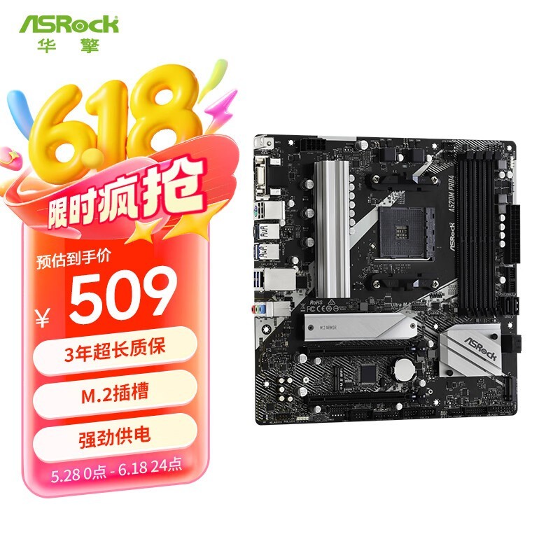 华擎 A520M Pro4 匠心 主板 支持 cpu 5700X3D/5700X/5600