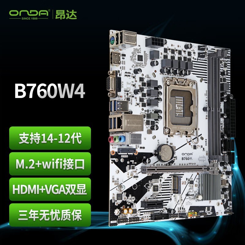 昂达 B760W4(Intel B760 /LGA 1700)M.2 wifi接口 支持12600K/14400F/13490F 游戏娱乐主板