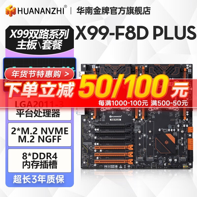 华硕 华南金牌X99-F8D PLUS双路主板cpu套装游戏工作室设计渲染服务器模拟器多开电脑至强e5 2696v3 2680v4 2686v4(8*DDR4内存槽)