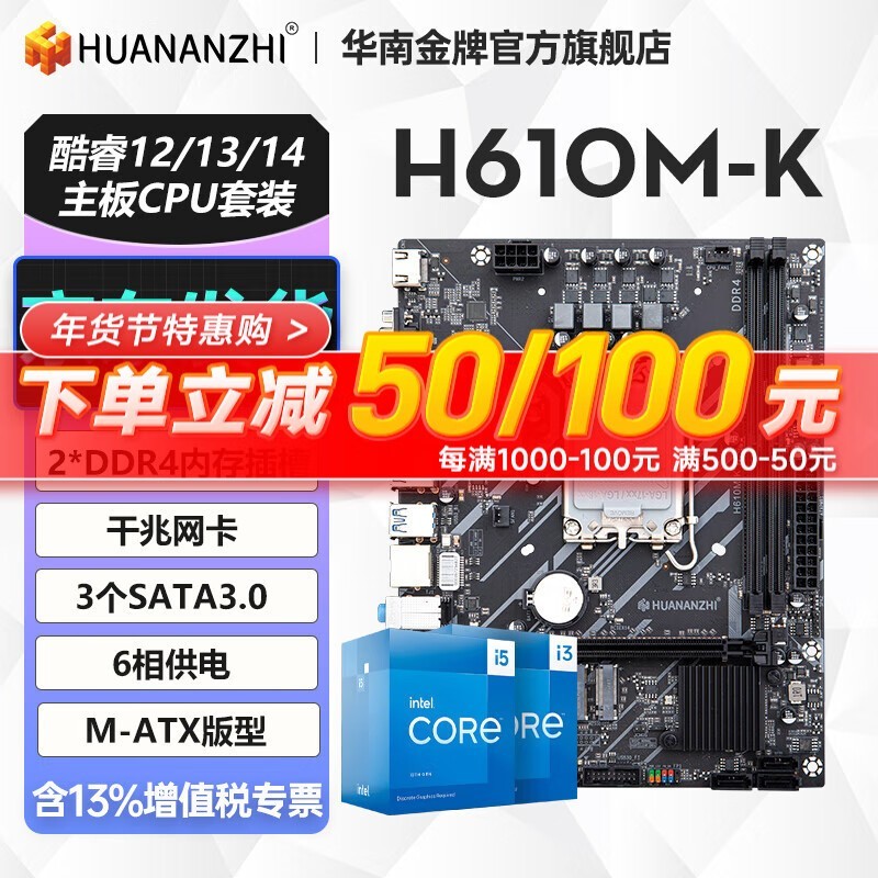 华南金牌 H610/B760M主板CPU套装酷睿i5 12400F/12600KF/12490F/i3 12100F台式机黑神话悟空游戏电脑itx H610M-K 单主板