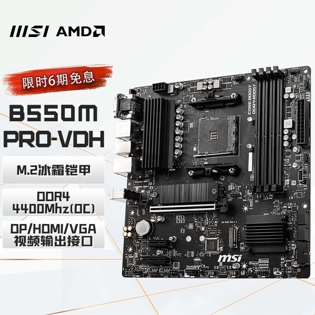 微星 B550M PRO-VDH DDR4电脑游戏主板 支持CPU 5700X/5700X3D/5700G(AMD B550/AM4接口)