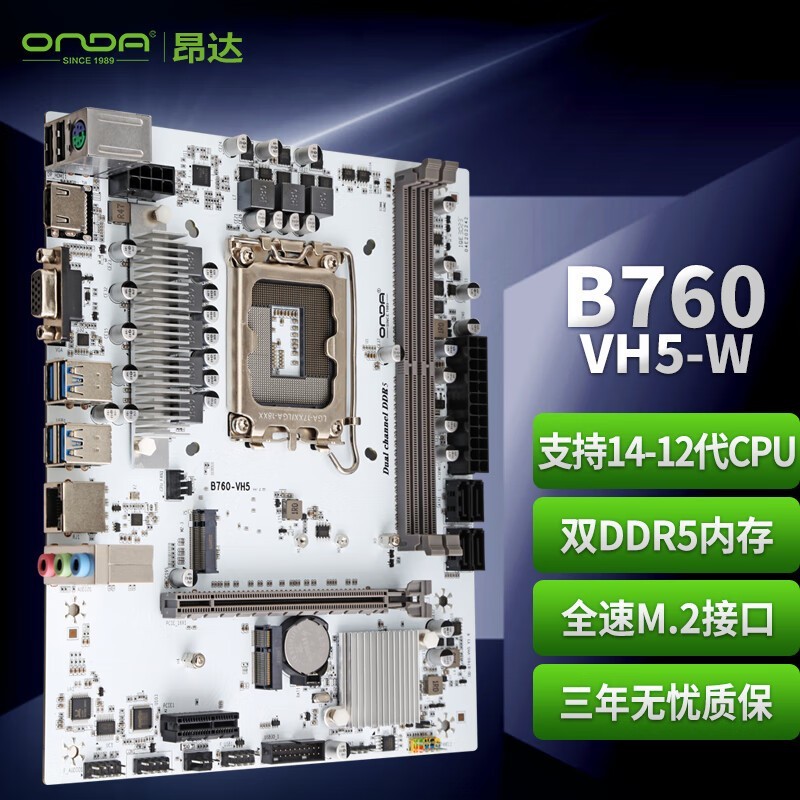 昂达 B760-VH5-W(Intel B760 /LGA 1700)支持DDR5 CPU12600K/14400F/13490F 游戏娱乐主板
