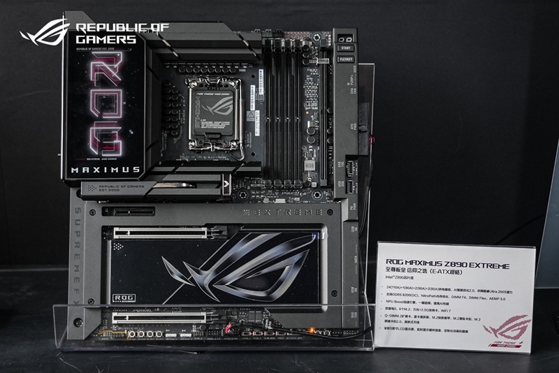 在这里你将看到一系列新发布的华硕主板,包括IntelZ890系列的ROG MAXIMUS Z890 EXTREME、ROG STRIX Z890-A GAMING WIFI S吹雪和TUF GAMING Z890-PRO WIFI主板。作为至尊板皇,ROG MAXIMUS Z890 EXTREME性能拉满,具备双雷电4和万兆+2.5G双有线网卡和WiFi7。特别是全彩5英寸LCD显示屏,实时显示硬件信息和定制图案,个性化十足。ROGZ890吹雪主板不止拥有银白装甲和浅色PCB,Polymo灯效图案都结合ROG LOGO和雪武战姬形象,次元浓度拉满。TUF GAMING Z890-PRO WIFI则拥有硬朗的白色装甲和浅色PCB,供电、互联和EZDIY设计也都具备,是硬派玩家的又一新选择。