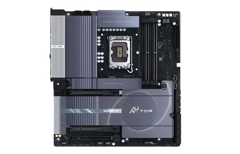 据报道,技嘉近日推出了新款AI TOP系列主板――Z890 AI TOP。此款主板采用16+1+2相Twin Digital VRM供电设计,搭载80A SPS DrMOS,确保稳定高效的电力供应。内存方面,Z890 AI TOP配备四条DDR5插槽,支持高达9500+MHz(OC)频率及256GB容量,并兼容CUDIMM模块。