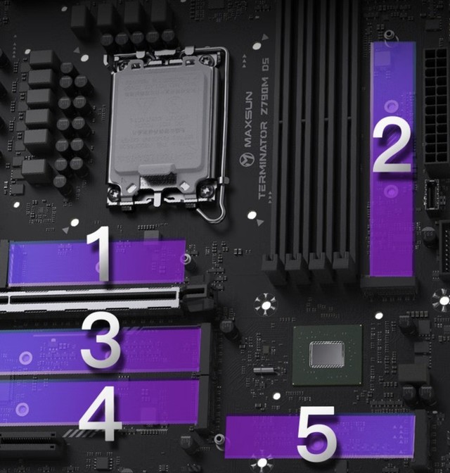 首先推荐铭瑄 Z790M D5WiFi主板,这款主板在去年首发时就打出了名堂。最大的特色是拥有5组M.2插槽,这对于一款M-ATX版来说是史无前例的,而且它的价格也十分便宜,简直不像是高端Z790芯片组应该有的价格,所以超强的拓展加上性价比优势让这款主板受到了广泛关注。
