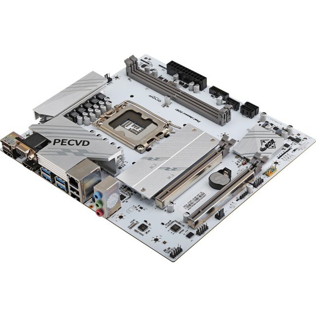 主板搭载了更大面积的阳极氧化工艺散热片,全面覆盖核心IC、供电模组、PCIE M2接口,有效降温抗干扰,并优化散热与供电稳定性。同时,显卡接口也采用了合金加固,受力强度更高,更稳定。此外,该主板还搭载了三合一封装的Dr.MOS模组,功率密度高且温度低,能提供更稳定的电力。