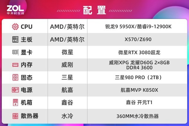 对比英特尔 i9-12900K,AMD 锐龙9 5950X另一个优势我们前面也强调过,那就AMD祖传的性价比,在旗舰处理器上看来也能适用。下面就分别用AMD 锐龙9 5950X和英特尔 i9-12900K攒出一套平台对比下。