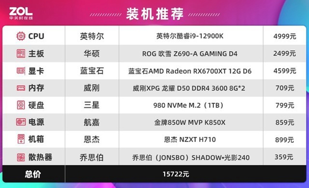 英特尔 i9-12900K平台(价格因降价会有价格波动所载现实情况为依据)