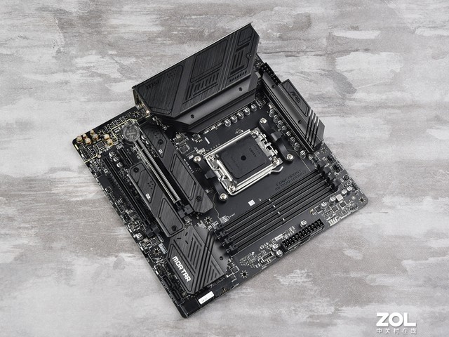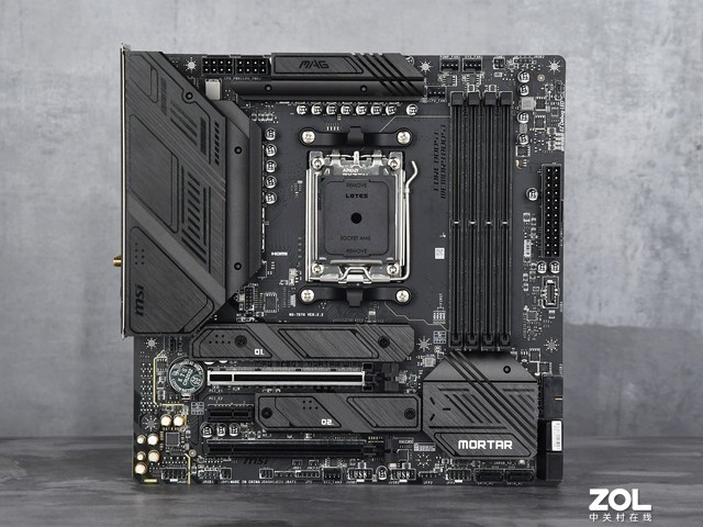 微星 B650M MORTAR WIFI主板采用与前几代相同的M-ATX板型,整体为黑色风格,无光效设计,军规简单。与X670/X670E不同,B650采用单芯片组设计,通道接口数量相当令人满意。