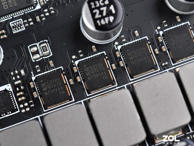 主板采用12+2+1相电源设计,PWM控制器为MP2857,Dr.Mos设计,型号为MP87670,与PWM一样来自MPS,可单相输出80A电流,与前几代相比,这一代迫击炮的很大的提升,应对中高端锐龙7000没有压力。