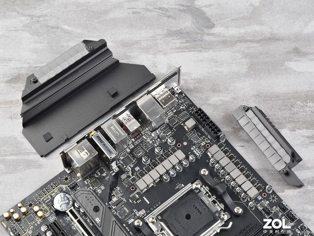 VRM散热装甲由两个金属散热器组成,底部还配有散热垫辅助Dr.Mos散热,使整个散热系统更加稳定。