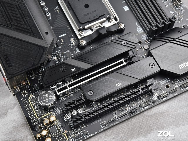 M.2方面,微星 B650M MORTAR WIFI主板有两个M.2插槽,全部支持PCIE4.0,并自带金属装甲散热器。