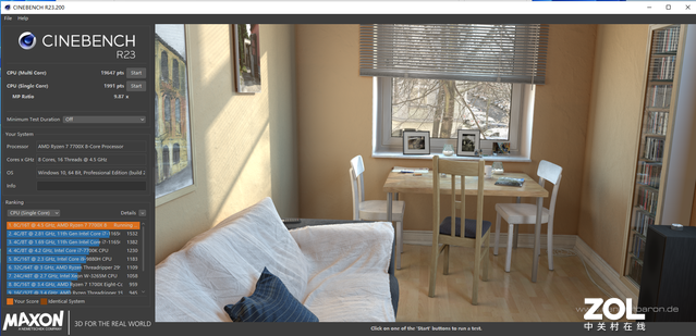CPU测试我们使用CINENCHR23这一常用的参考软件进行测试,该软件可以测试处理器的多线程和单线程性能。