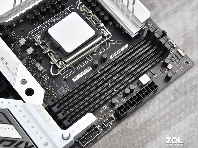 当然,华硕 Z790-A GAMING WIFI D4这次采用了DDR4内存插槽,从名字就可以看出来,而华硕Z790代吹雪还没有推出DDR5版本。这四个内存插槽的频率可以达到5333,当然通常4000Gear1的内存就足够了。