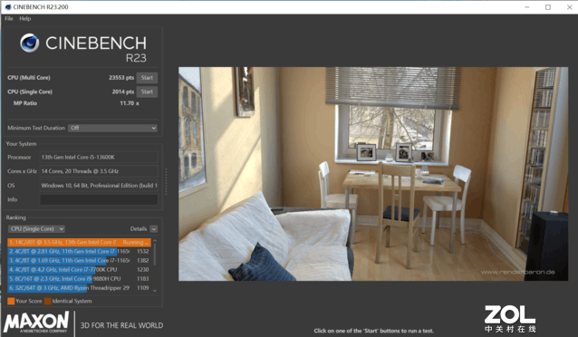 CPU我们用CINENCHR23进行测试,这个软件可以测试处理器的基准性能。