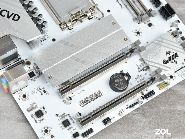 昂达 Z790 PLUS-W主板有两个显卡插槽,第一个是PCIe4.0x16带宽,第二个是PCIe4.0x4带宽,两个插槽都是金属加固的。
