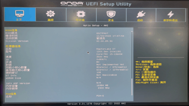 昂达 Z790 PLUS-W主板有中文图形BIOS界面,但目前还没有截图功能,还有很大的改进空间。