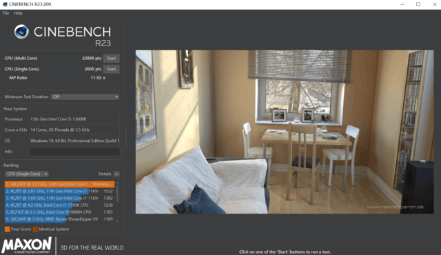 下一步,我们将对CPU进行测试,使用CINEBENCHR23软件,这是一个CPU基准测试软件。