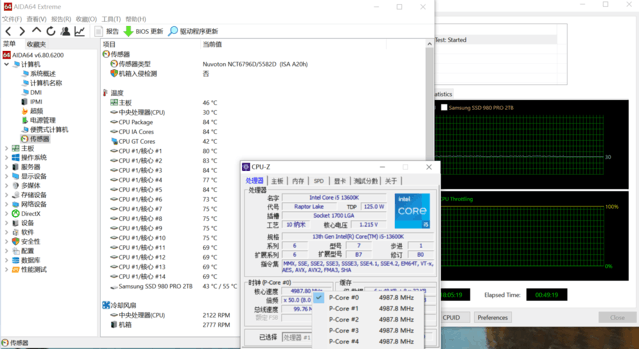 经过40多分钟的复制试验,我们使用了360mm的水冷,CPU温度在84℃左右,13代酷睿这一代的确很热,对散热器的要求也很高,但是昂达Z790PLUS-W主板也很强,中间没有不良反应,抗压成功。