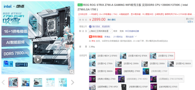 且天猫商城还有华硕Z790吹雪主板搭英特尔 i9-13900KS处理器套包,8999元火爆促销中。