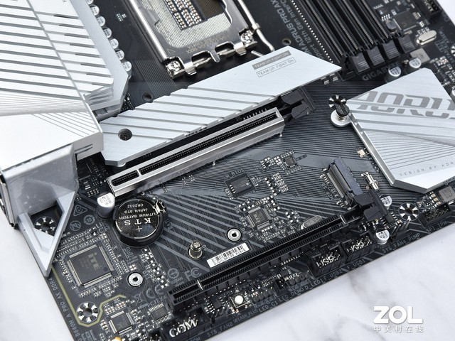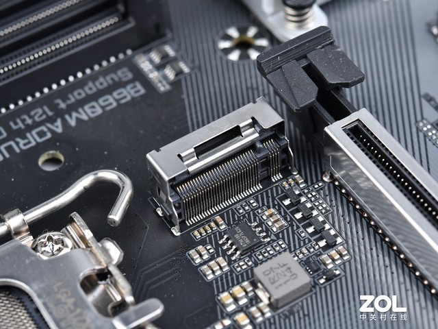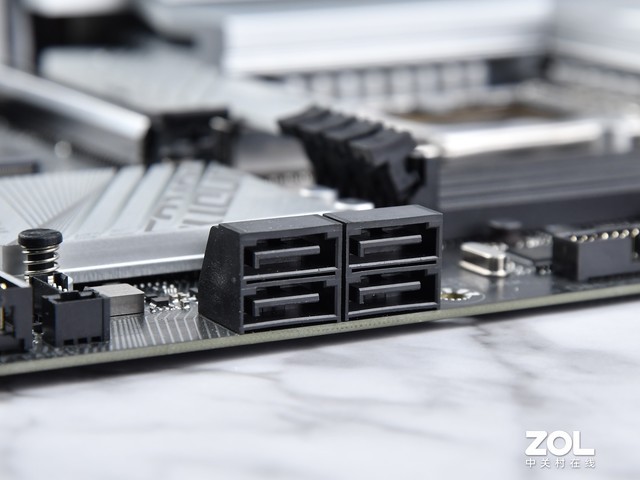 PCIex16长插槽周围有两个M.2插槽,其中一个配备了金属散热片,与PCIex16长插槽相同。这个M.2插槽直接连接到CPU,支持PCIe4.0。PCH还支持PCIe4.0。在实际使用中,理论上直接连接到CPU的M.2插槽会有更好的性能,如果只有一个M.2固态插槽,一定要放在M.2插槽里,里面有装甲,直接连接到CPU。