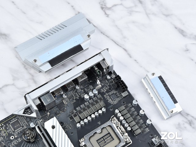 技嘉 B660M主板的散热装甲很厚,VRM区有两个金属散热器。为了MOSFET在供电区下方的散热,这两个主板还配备了高质量的导热器,帮助MOSFET在高负荷下快速排出热量。