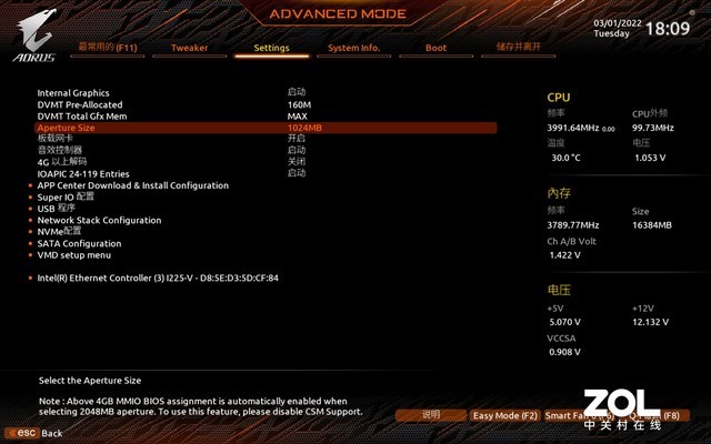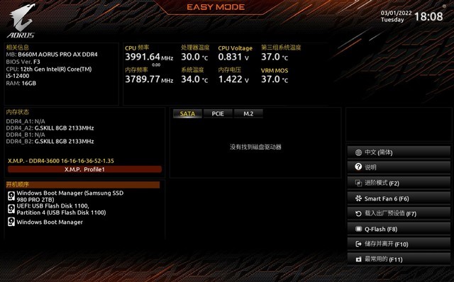 技嘉 B660M主板延续了技嘉近两年日益完善的中文图形BIOS设计,功能齐全,调整方便。