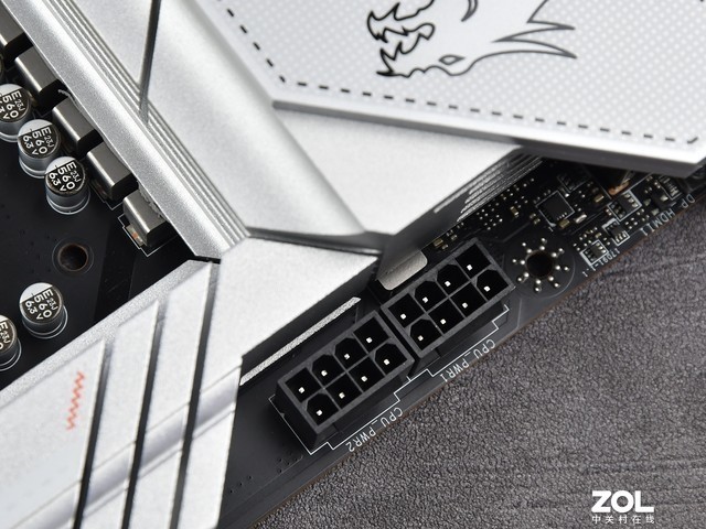 CPU供电接口为双8pin,如果条件允许,可以插入双8pin,这样可以降低CPU供电线的温度。