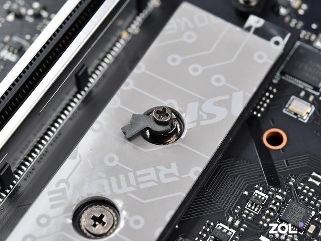 M.2便捷的卡扣设计也采用了微星,主M.2固态无需螺钉即可固定。