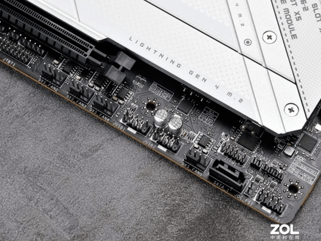 这个主板有两个PCIex16长插槽,第一个是金属装甲加固,支持PCIe5.0x16带宽,第二个是PCIe4.0x4带宽。